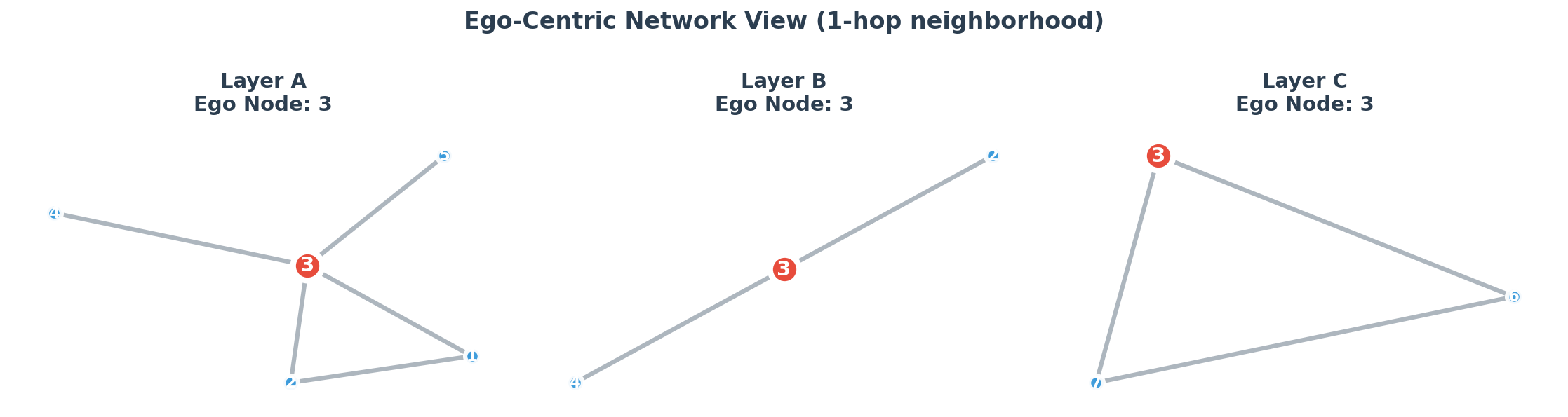 ego: Node ID to focus onlayers: Specific layers to visualize (or None for all)max_depth: Neighborhood depth in hopslayout: Layout algorithm per ego graphego_node_size: Size of the highlighted ego node